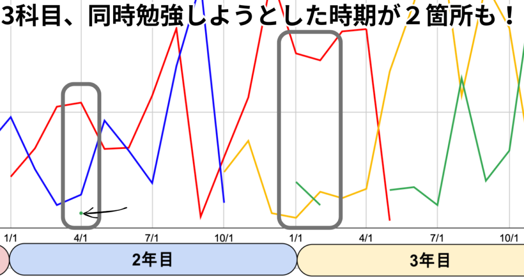 - 1度に勉強は2科目まで、それ以上は消化不良のリスクあり