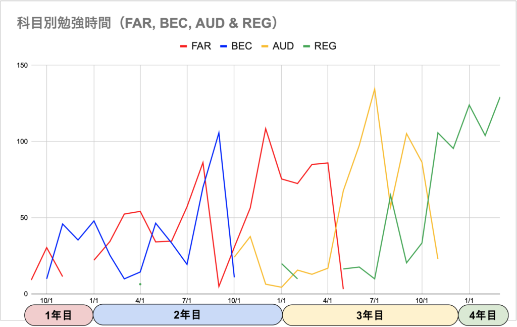 それでもFAR®より勉強時間が少なく済んだのは、3科目目のため要領が掴めたからだと思います。
